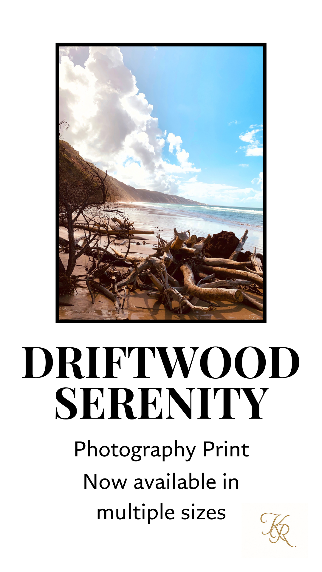Driftwood Serenity, taken at Rainbow Beach, Queensland, Australia, captures the essence of tranquility and natural beauty, showcasing a stunning seascape where vibrant blue skies meet pristine white sands. The azure and aqua waters create a mesmerizing contrast against the backdrop of fluffy white clouds. At the heart of this captivating scene lies a spectacular bundle of driftwood, gracefully resting on the sand, embodying the epitome of serene elegance. Driftwood Serenity, is infused with warm, earthy hues and a soft golden glow — evoking the calm stillness of a late afternoon tide. A moment of coastal tranquility where nature’s quiet mood meets a timeless rhythm. Let this piece envelop your space in warmth, nostalgia, and grounding peace.