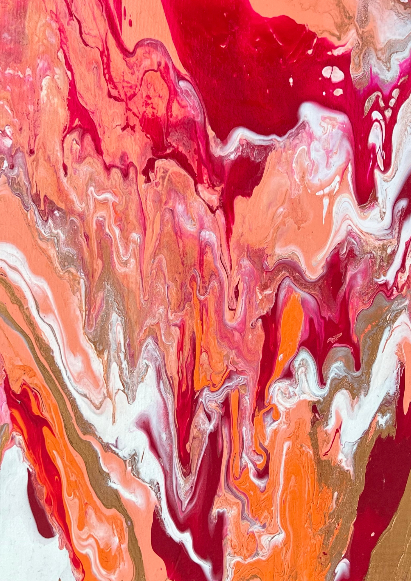• Colors: Crimson, coral, orange, gold, white, blush pink, burnt sienna