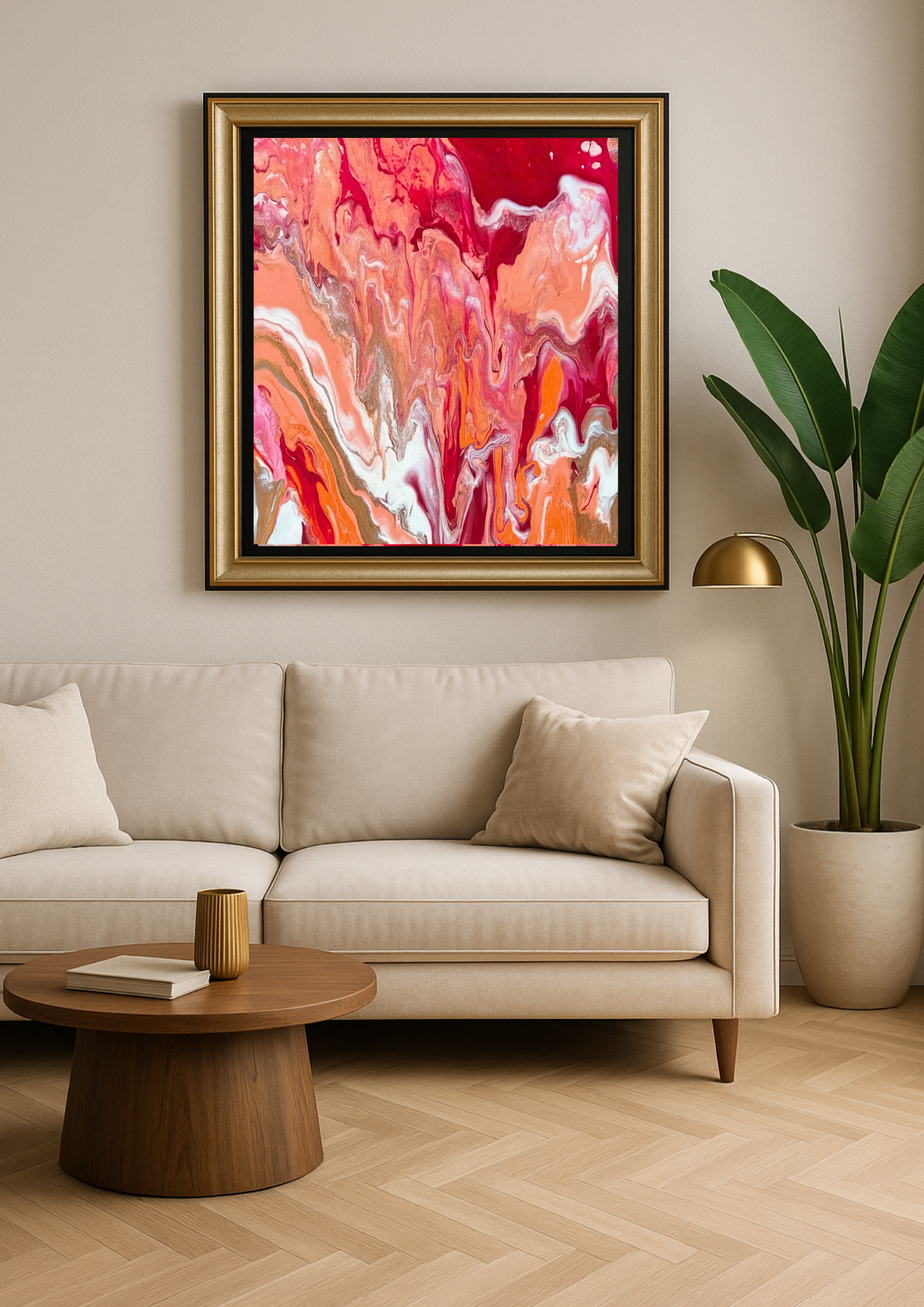Framed in sleek black, this canvas sits with quiet strength and timeless confidence.