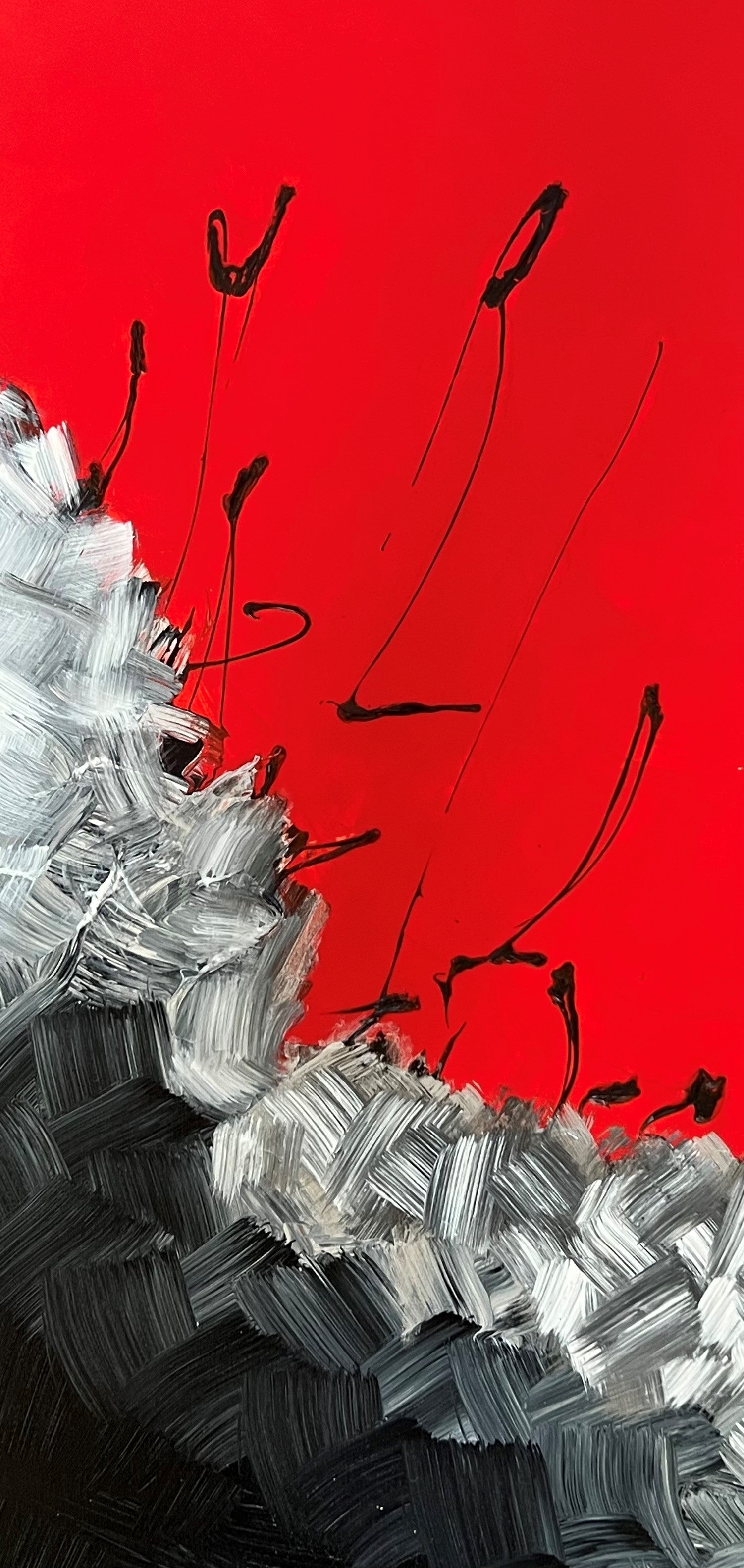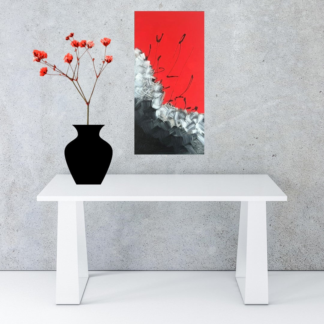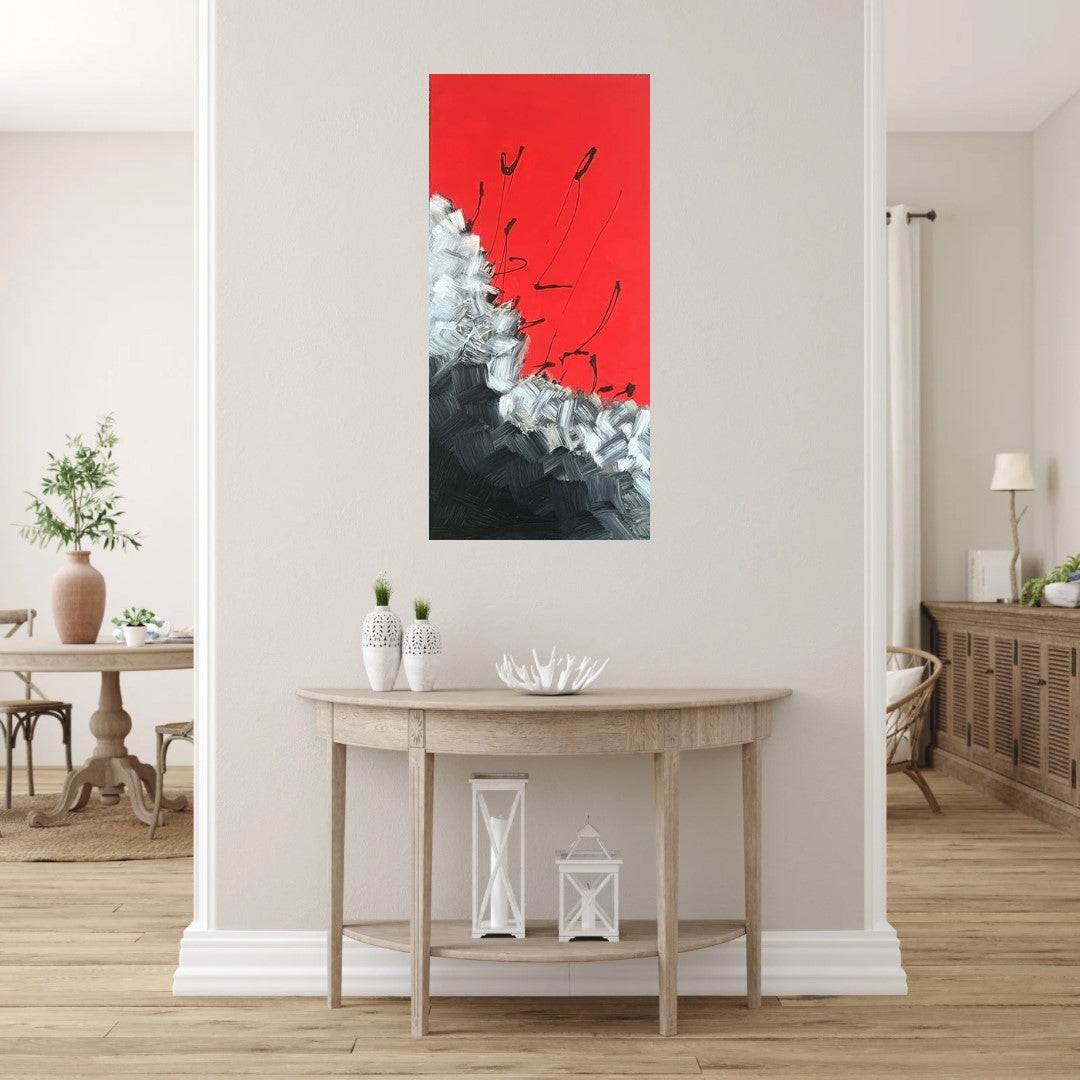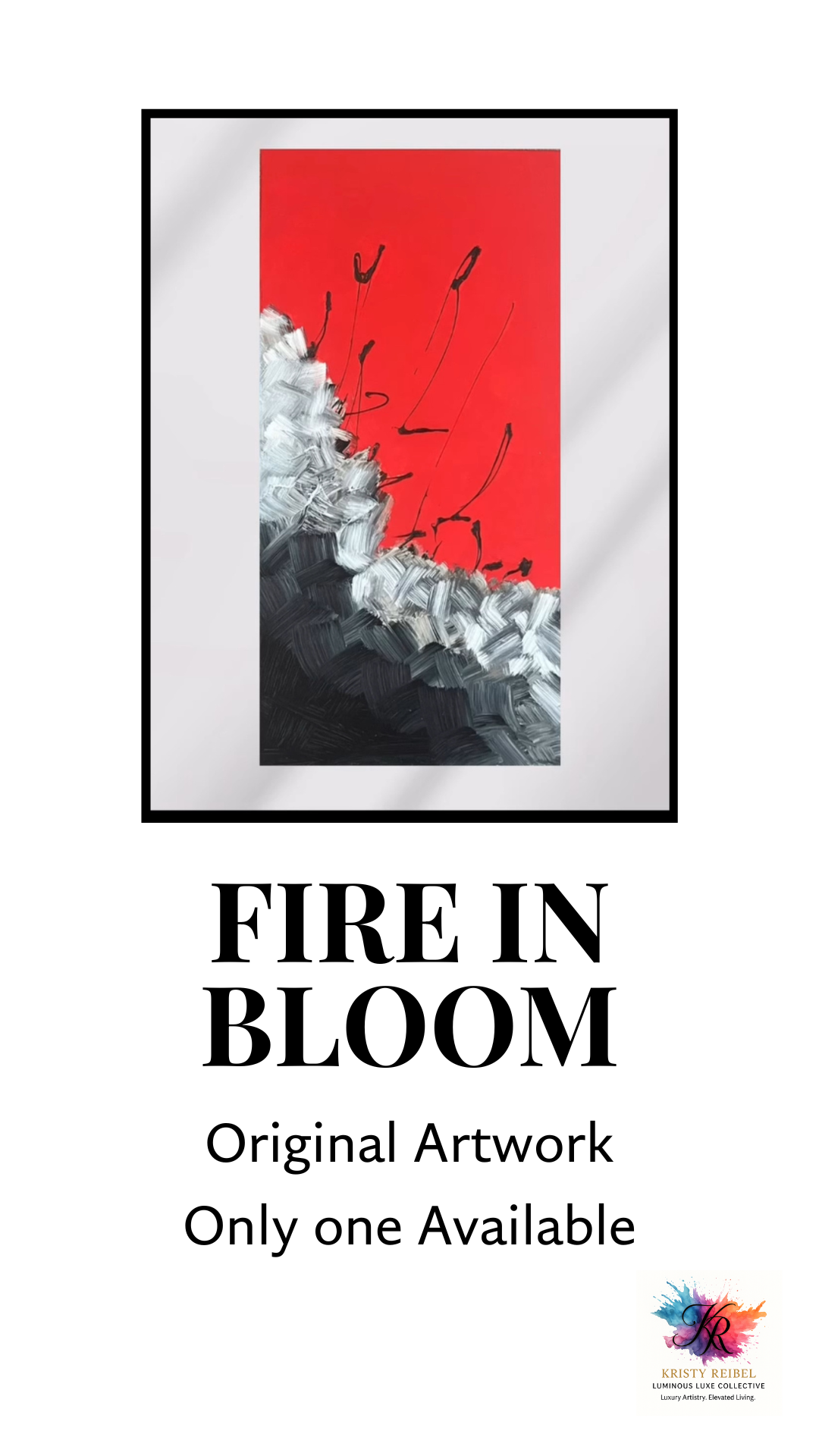 A blazing force of nature — Fire in Bloom is the moment power becomes art. Vibrant crimson crashes into icy silver and coal black in this dynamic original painting, igniting the canvas with movement and emotion. Bold black strokes rise like blooming flames, unapologetic and alive. It’s the essence of transformation, feminine fire, and wild elegance.