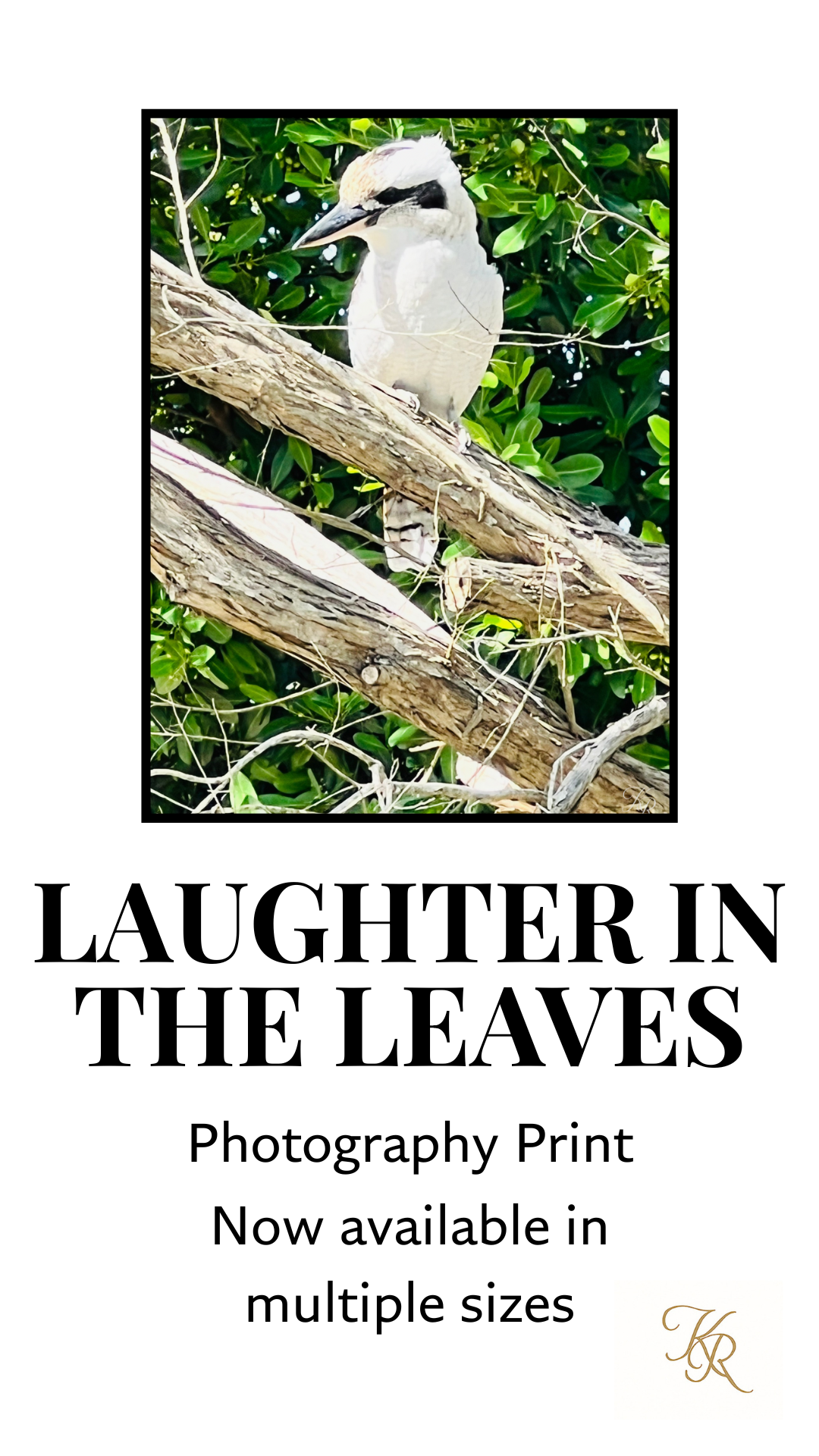 Immerse yourself in the enchanting beauty of Queensland, Australia, with this stunning photograph of a gorgeous white kookaburra perched gracefully on a tree branch. Adding to the charm is the distinctive laughter of the kookaburra, an iconic sound of the Australian bush. This melodious cackle, often heard at dawn and dusk, resonates through the tranquil scene, bringing the photograph to life. The kookaburra's laughter not only enhances the visual appeal but also evokes a sense of place and connection to the natural world, making this artwork a truly immersive experience.