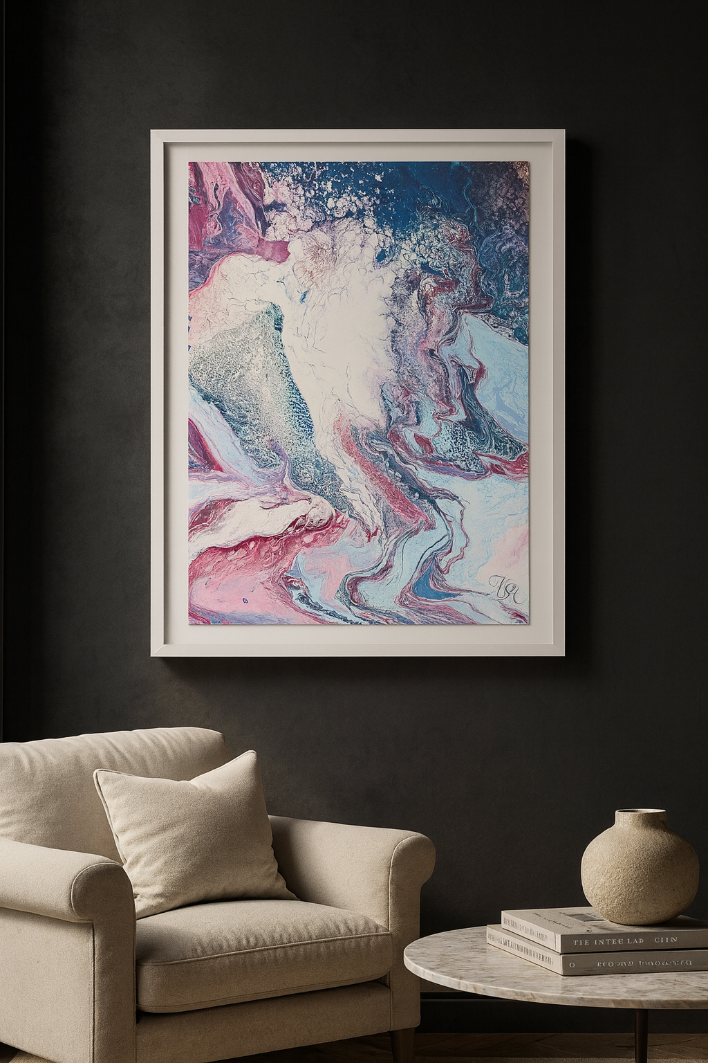 This print is derived from an original artwork painted with various acrylics on canvas. Available in four different print paper sizes with canvas and framed options available. Each piece captures the intricate details and textures of the original creation, making it a perfect addition to any art collection or home decor.