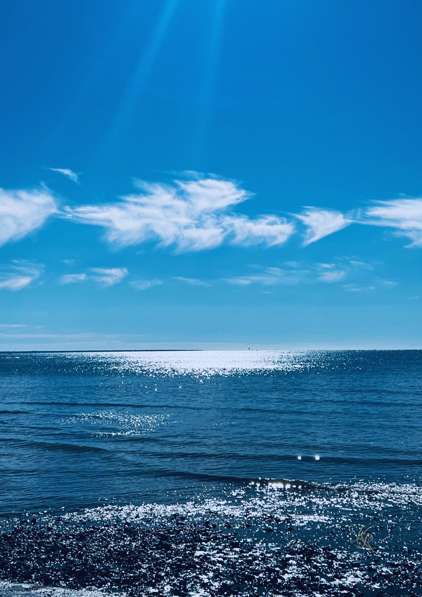 A single beam cuts through sky to water, anchoring the scene in quiet divinity.