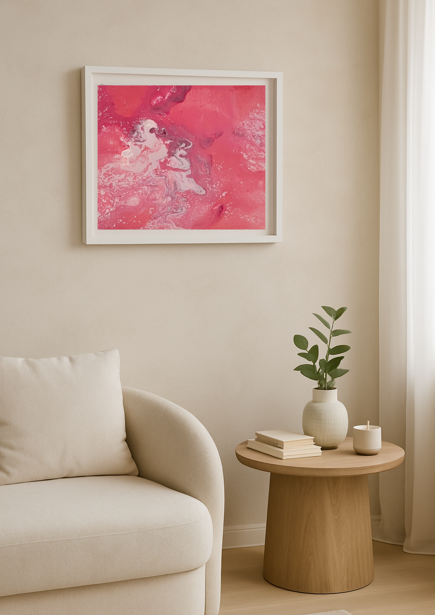 Note: Some photos may show the artwork framed for styling purposes. Your piece will arrive as described – either as a rolled print or a stretched canvas, ready to hand.