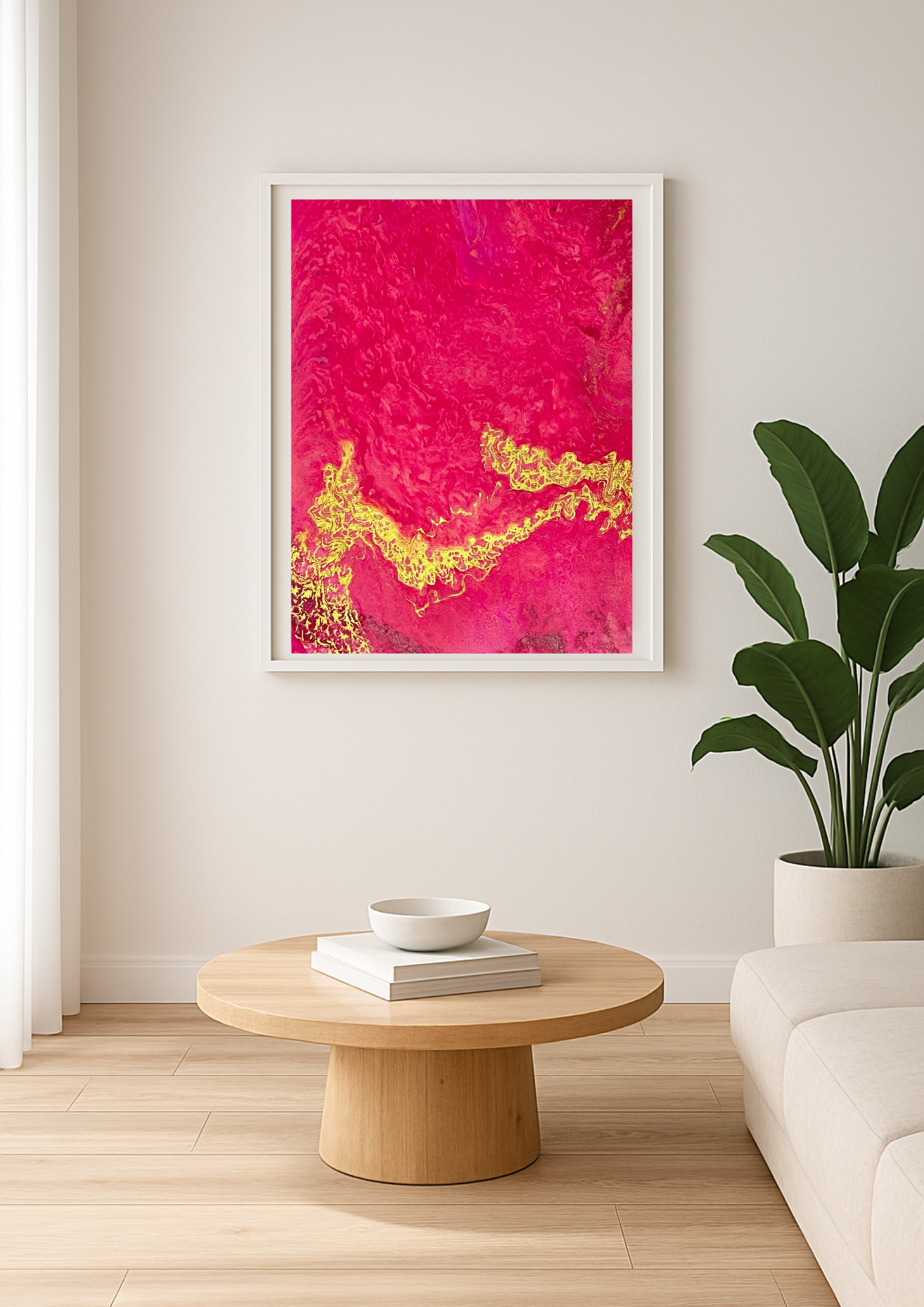 Note: Some photos may show the artwork framed for styling purposes. Your piece will arrive as described – either as a rolled print or a stretched canvas, ready to hand.