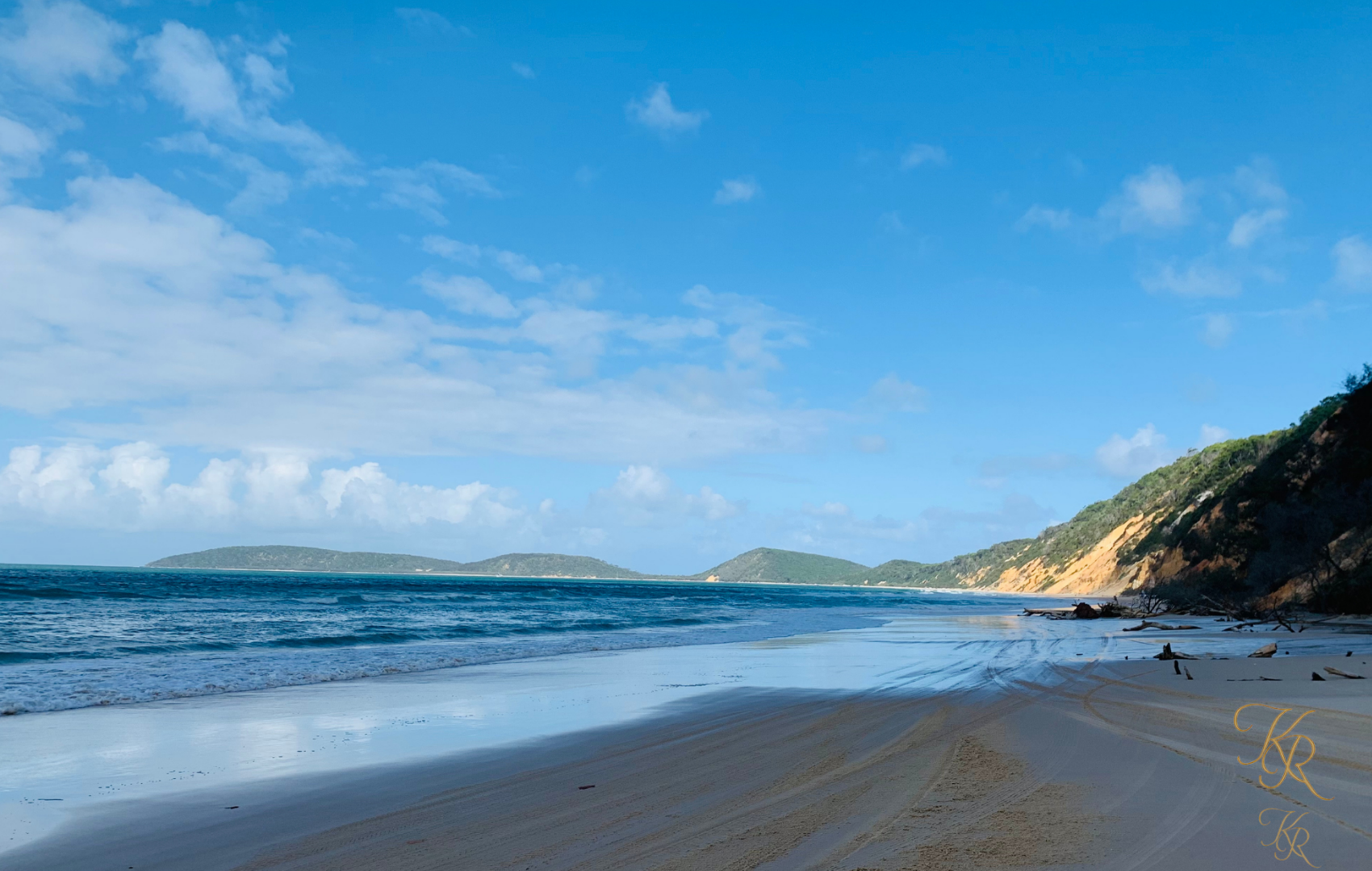 Soft sand. Golden cliffs. Gentle tide.