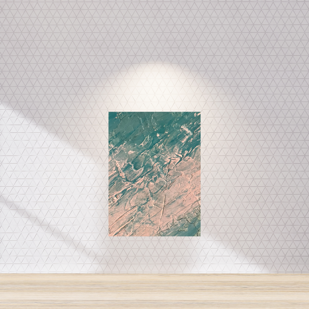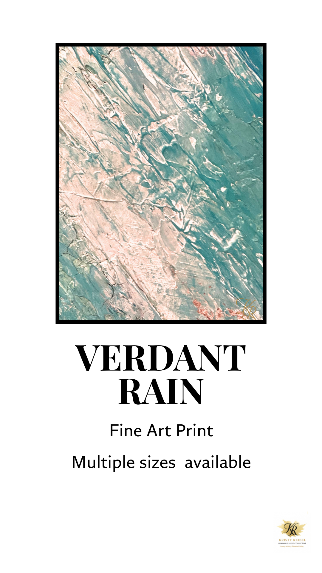 A fine art print of the original Verdant Rain — a textural rainforest-inspired artwork capturing the flow of rain, light, and growth. Rich shades of aqua, soft green, and ivory create a layered, organic feel that refreshes and uplifts.