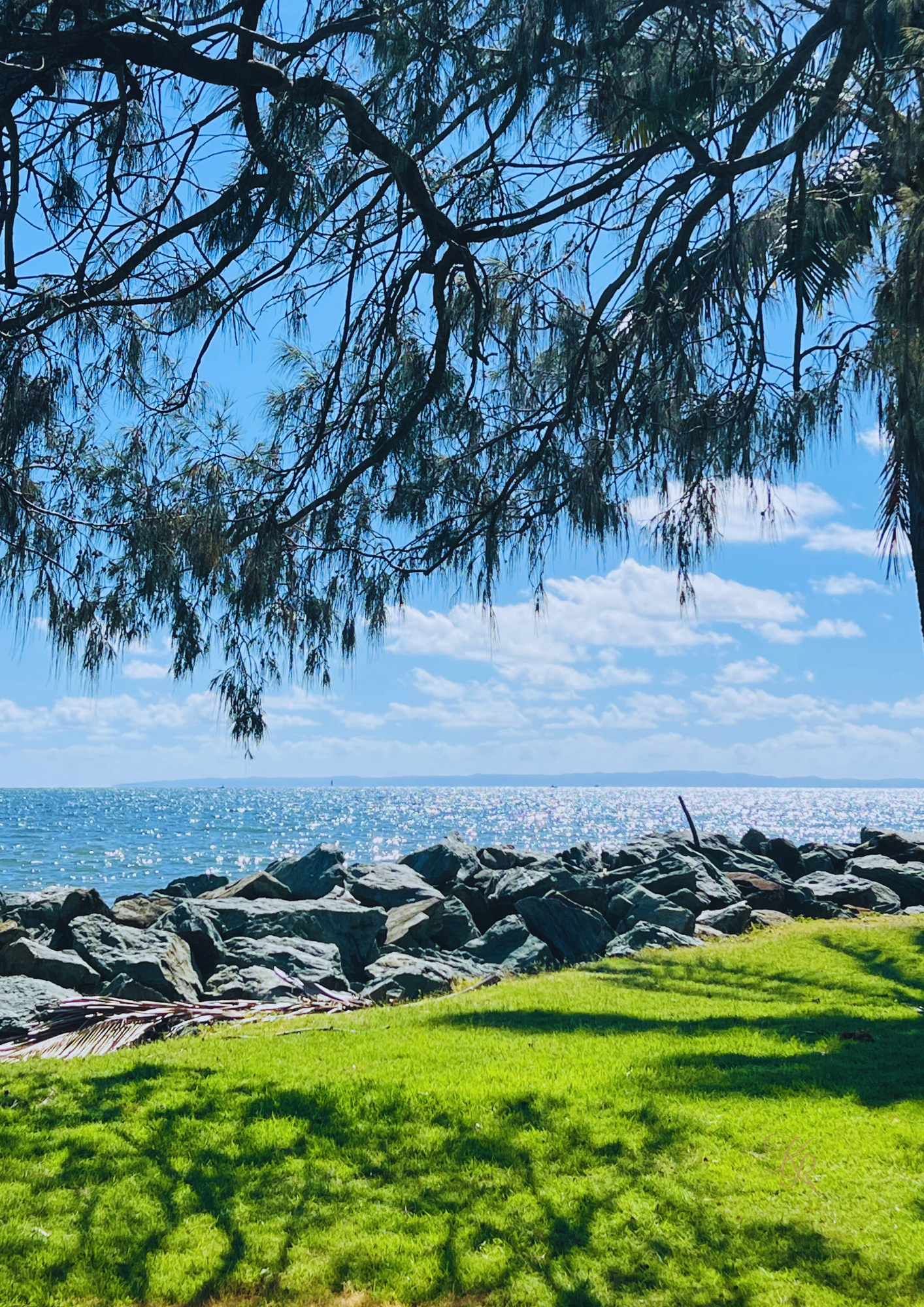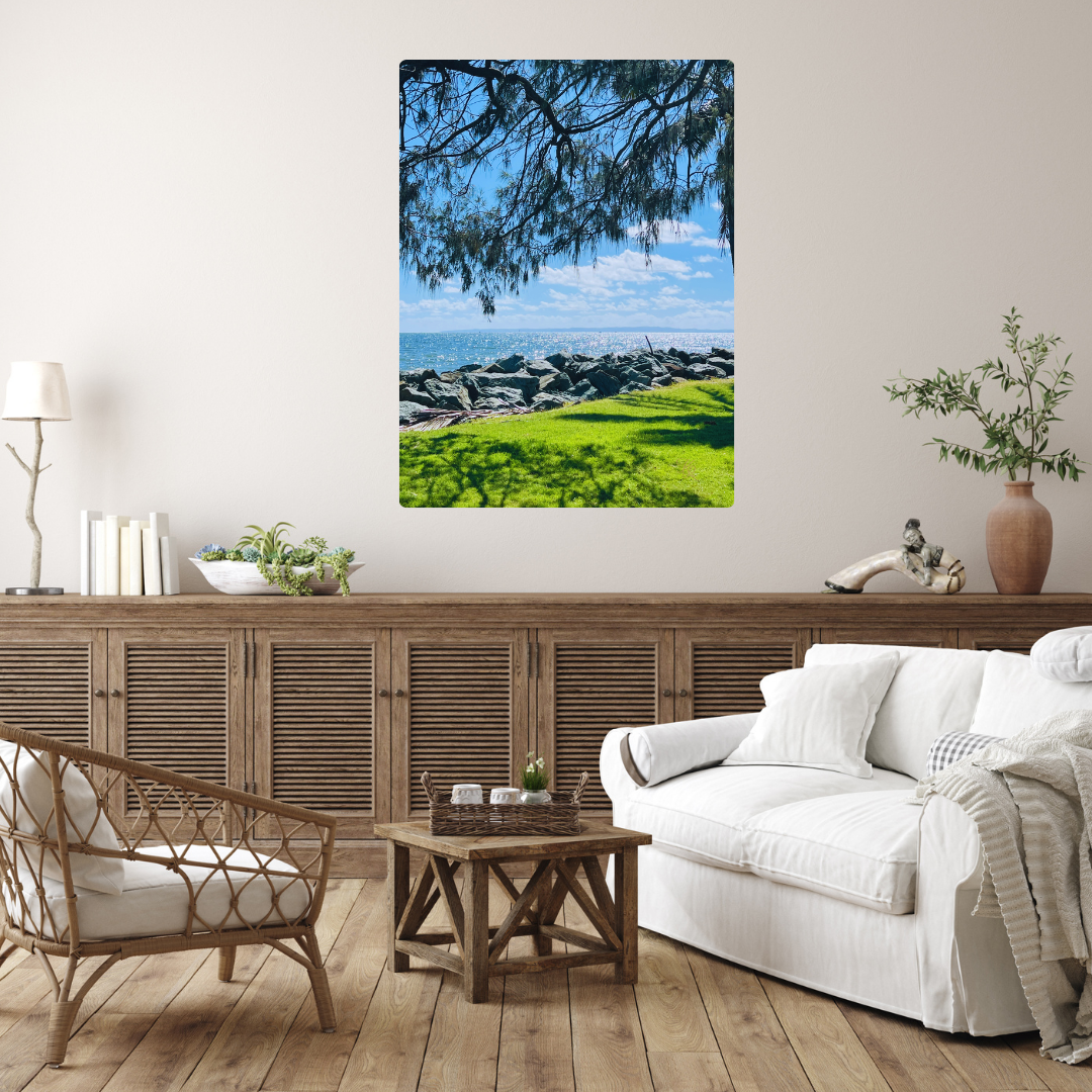 Photographed on a sparkling coastal day, Where Strength Rests captures a moment suspended between shade and shine, rock and sea.